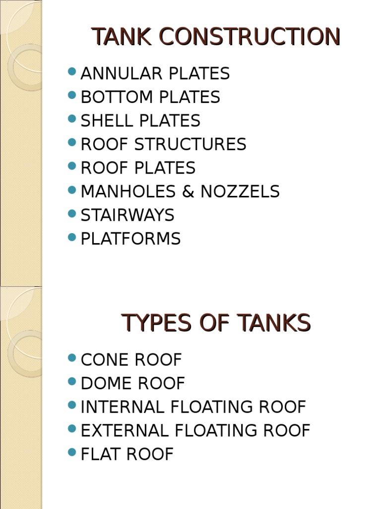 This standard does not present. Inspeksi is one of the best places to find api 650 tank construction sequence documents in pdf and powerpoint formats. Tank basics api 650 fabrica3on www.epcmconsultants.co.za. Most bottoms have wrinkles in them which are totally inconsequential and the bottoms flatten out when uniformly loaded by the product. Api 650 tanks installation tank bunds foundations/ring beams welding procedures commissioning tank strapping ndt hydrotesting pv vents 5/27/2009 fuel tank & pipe 3 floor plate layout strake layout roof construction roof lift nozzle installation surface preparation tolerances control philosophy instruments